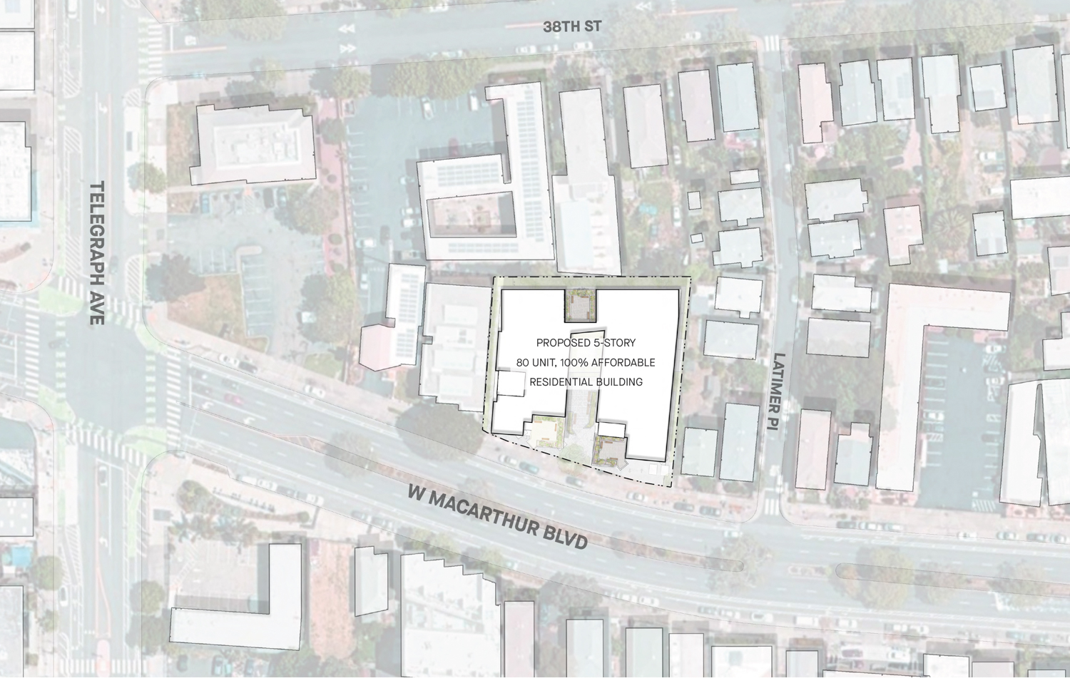 The roughly half-acre property is located along West MacArthur Boulevard close to the intersection with Telegraph Avenue and I-580. Future residents will be just seven minutes away from the MacArthur BART Station, and the retail-rich Piedmont Avenue is ten minutes away on foot.