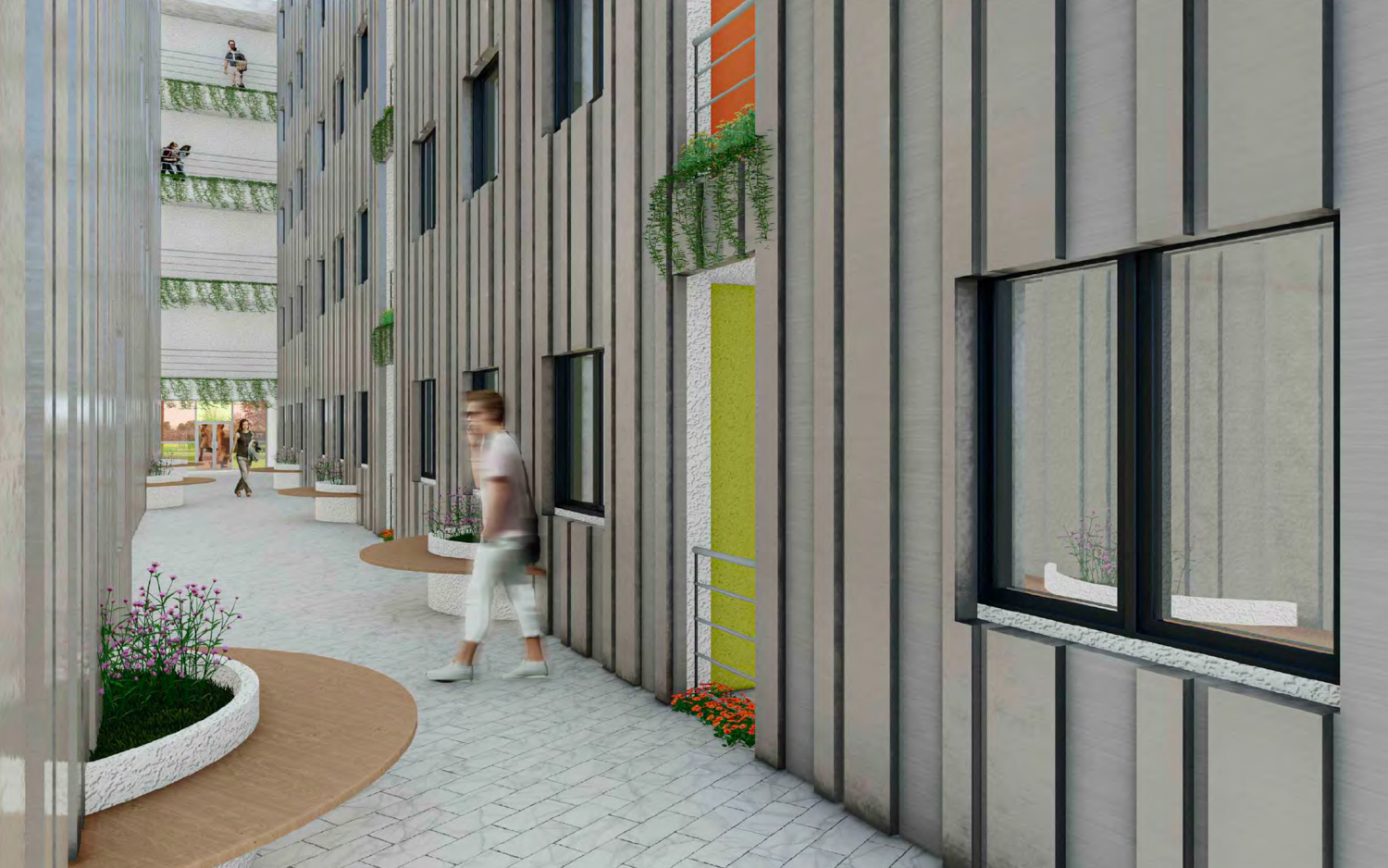 2910 Ramona Avenue inner courtyard view, rendering by Ramos Design Group